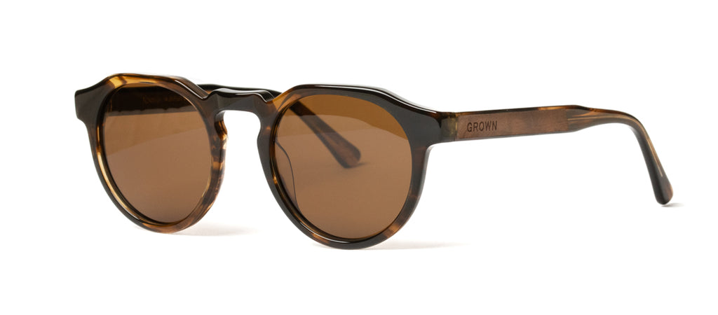 Handcrafted from plant based and biodegradable Ecotate™ with Californian walnut burl wood veneer accents. The stylishly curved Apollo frame also features a keyhole bridge and comes in several base colors and lens options.