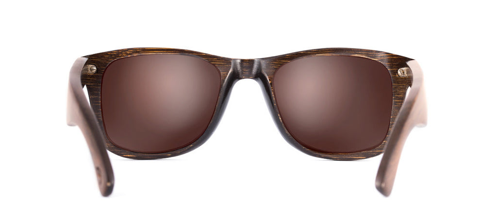 A classic wayfarer shape, our Flagship 'Kickers' style are handcrafted from durable and lightweight bamboo. Featuring distinctive wedge cut arms, an elevated bridge and solid brown polarized lenses. These stunning Bamboo sunglasses are also a big hit amongst ocean dwellers thanks to the buoyancy of the light wood……That’s right, they float! With this beautiful material naturally varying in colour and grain, each pair is completely unique.